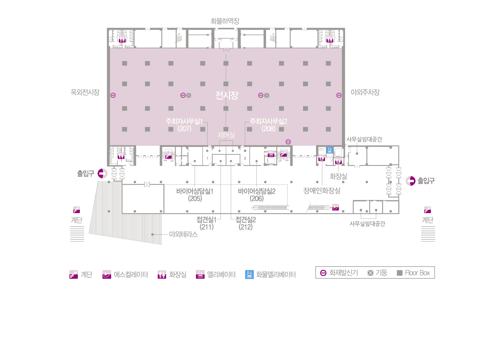주최자 사무실 2개소, 접견실 1개소, 바이어 상담실 2개소